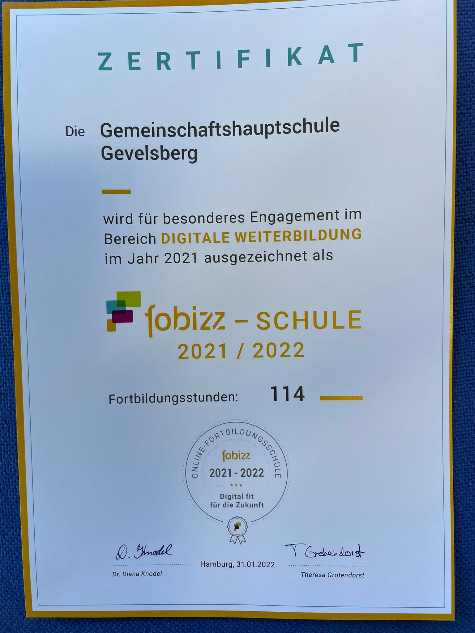 Am 19.04.2021 wurde der Hauptschule Gevelsberg erneut das Berufswahl-Siegel für vier weitere Jahre verliehen.