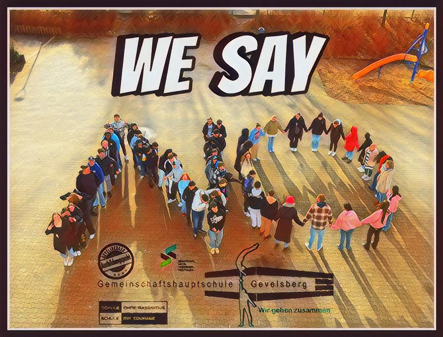 Mit einem eindeutigen "NO" positioniert sich die Gemeinschaft der Hauptschule Gevelsberg gegenüber Rassismus, Rechtsradikalismus, Antisemitismus, Islamfeindlichkeit und jeglicher anderer Form von Diskriminierung!