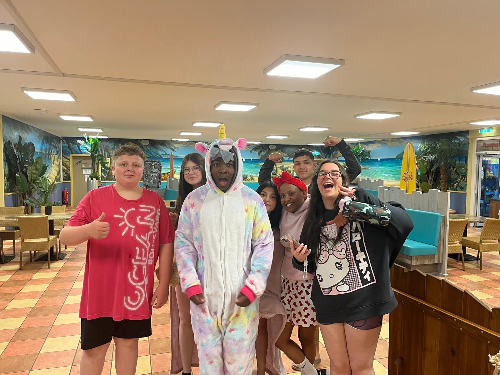 Besucht wurde der Erlebnispark Schloss Dankern in Haren an der Ems. Die Schülerinnen und Schüler waren zu jeweils sechst in Bungalows untergebracht. Diese beinhalteten nicht nur drei Doppelschlafzimmer, sondern boten auch einen gemütlichen Wohnraum mit Kochzeile, welche trotz Verpflegung seitens des Parks intensiv genutzt wurden (auch nachts). Das spricht scheinbar für einen erfolgreichen Hauswirtschaftsunterricht in der Schule.