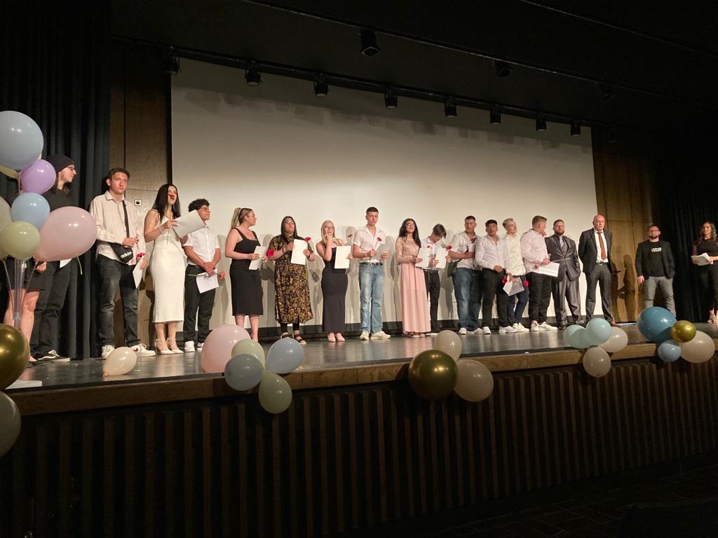 Für passende Unterhaltung sorgten die Akrobaten von Afrobatic, warme Grußworte kamen von der Schulleitung, den Klassenlehrer*Innen Frau Jahnke-Ouni, Frau Neuhaus, Frau Albrecht und Herrn Roggenkamp sowie der stellvertretenden Bürgermeisterin Gevelsbergs Sonja Dehn. Ein besonderes Highlight war sicherlich die Abschlussrede des Absolventen Alind Mola.