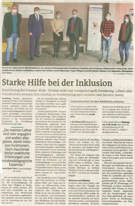 Die Hauptschule Gevelsberg ist eine Gemeinschaftshauptschule. Gemeinschafts bedeutet, dass Schülerinnen und Schüler mit einem besonderen Förderschwerpunkt im Rahmen des Regelunterrichts und mit besonderer Hilfe von Sonderpädagog*Innen gemeinsam mit den Regelschüler*Innen unterricht werden. Ein anderer Begriff hierfür ist Inklusion.