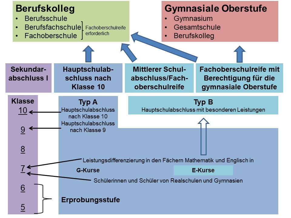 Der Hauptschulabschluss und der Mittlere Schulabschluss ermöglichen einen beruflichen Ausbildungsbeginn. Ein besonders guter Mittlerer Schulabschluss qualifiziert Schülerinnen und Schüler zudem für die Fortsetzung ihrer schulischen Ausbildung an einer gymnasialen Oberstufe.