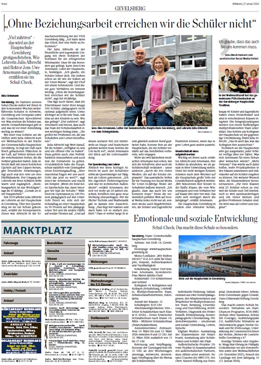 21. Januar 2026: Gemeinschaftshauptschule Gevelsberg in der Presse